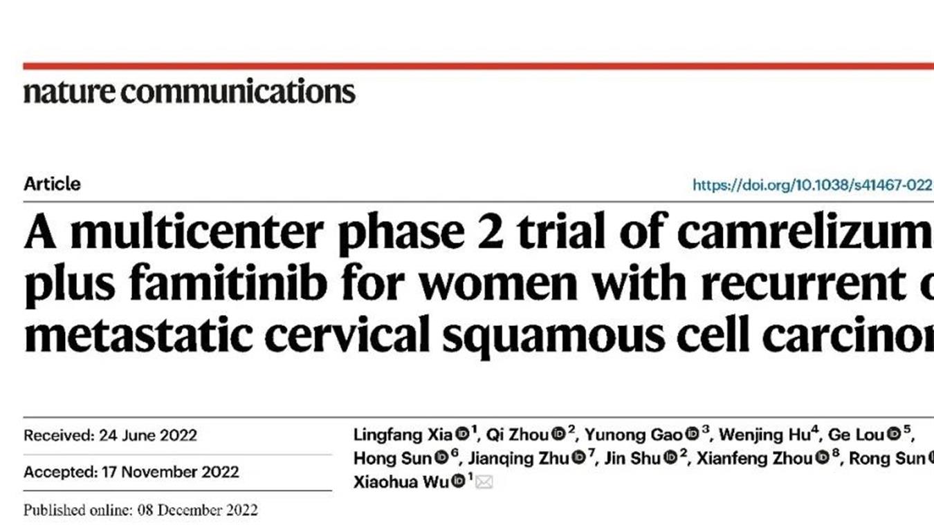AG电子创新药卡瑞利珠单抗联合法米替尼用于复发或转移性宫颈癌研究结果荣登JCO